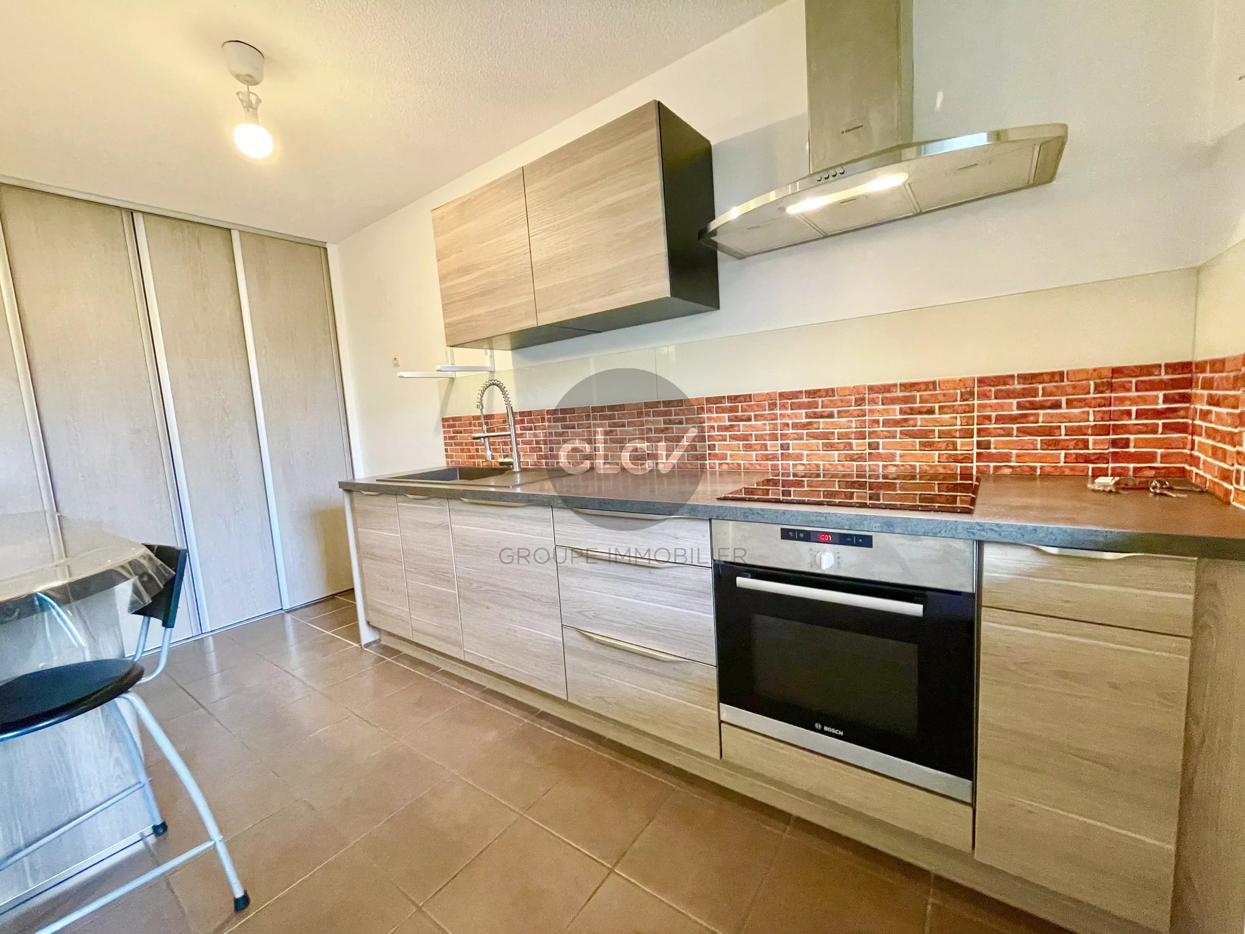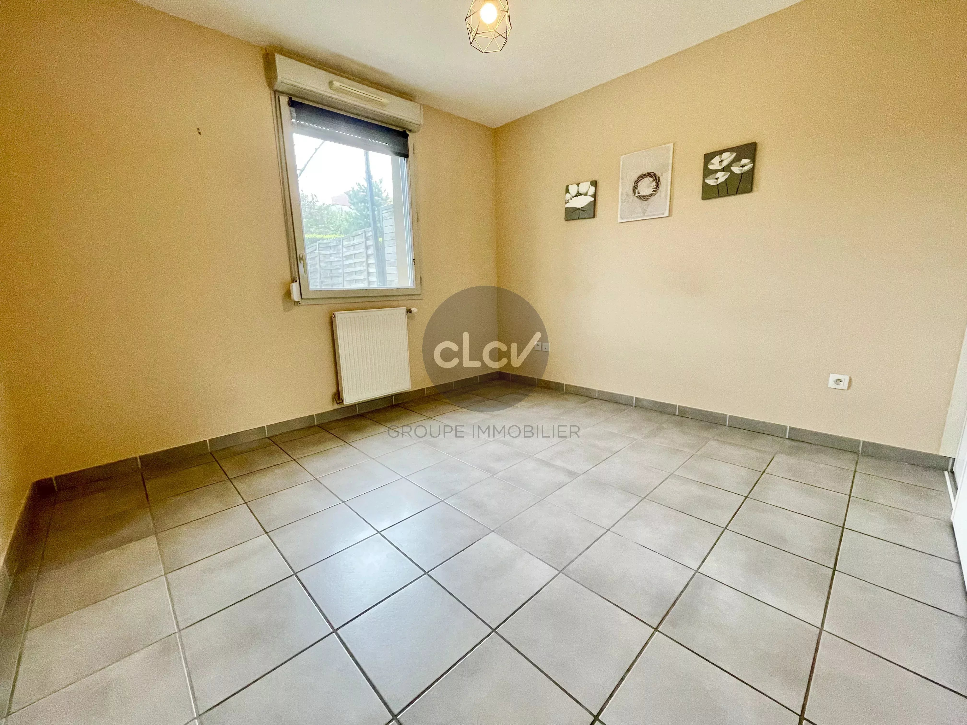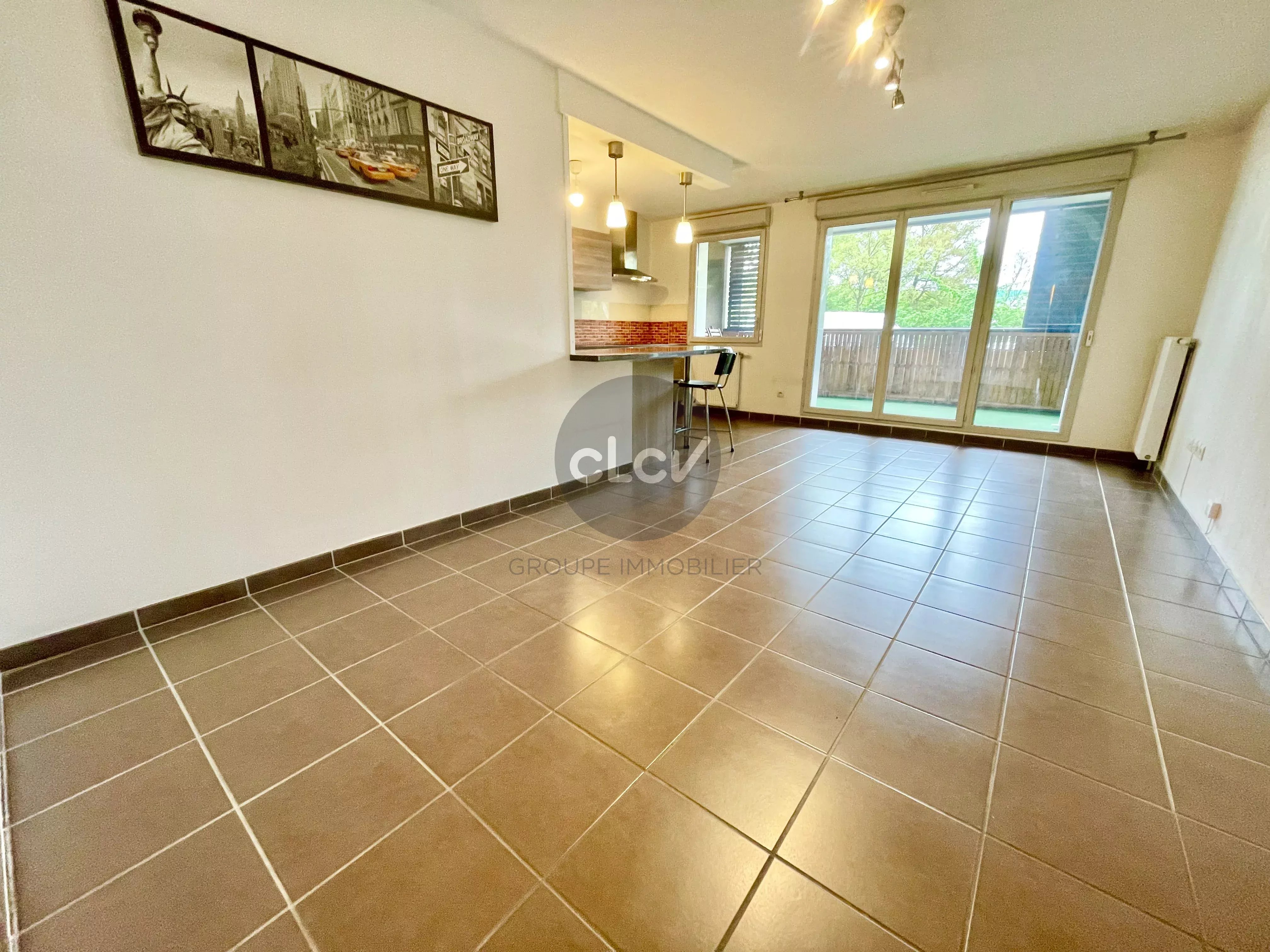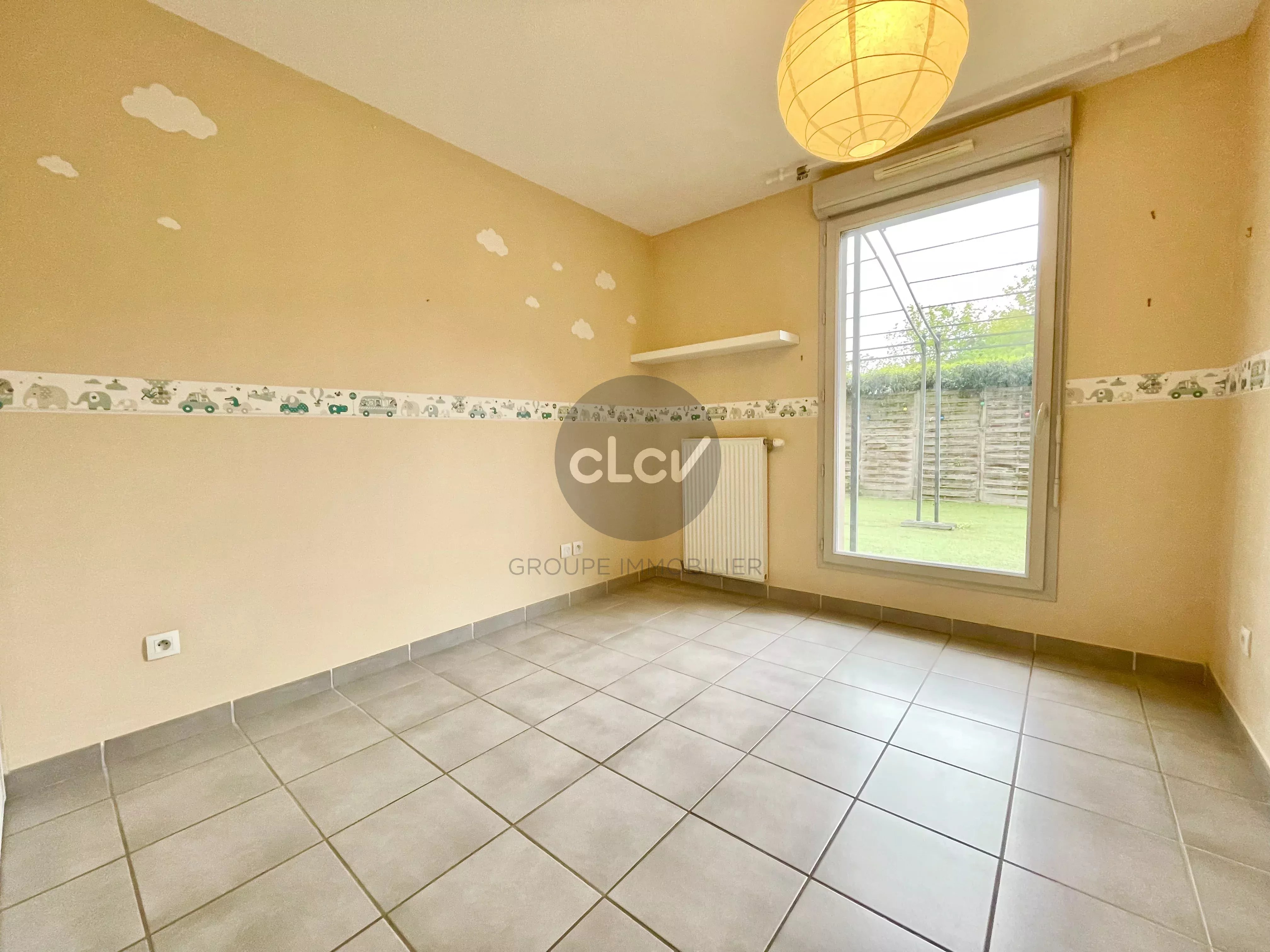 Séjour avec Cuisine US Meublée et Equipée ouvert sur Terrasse sans vis à vis, 3 Chambres ouvertes sur Jardin privatif de 50 m² au calme, Salle de Bains avec Baignoire, Toilettes.