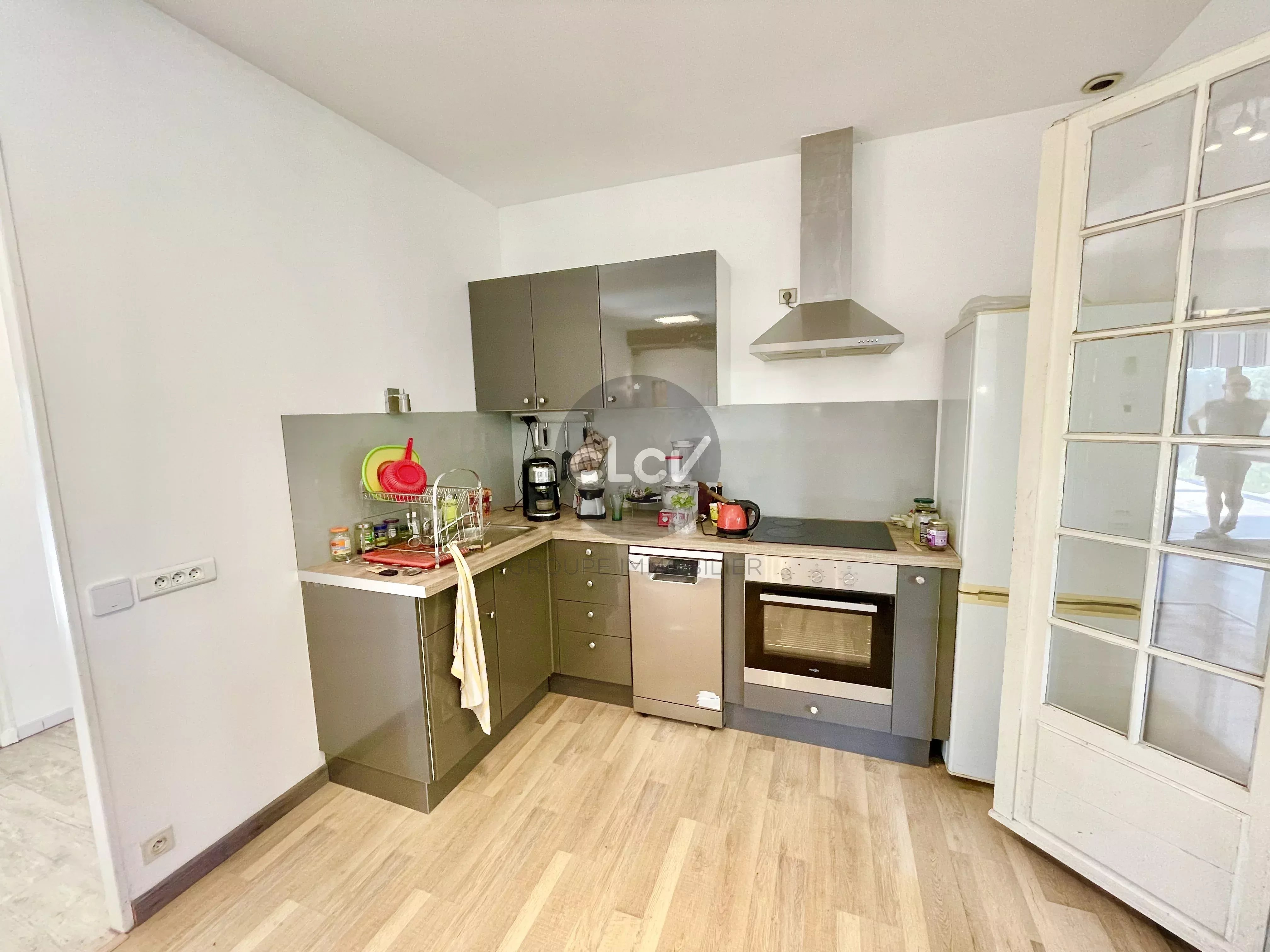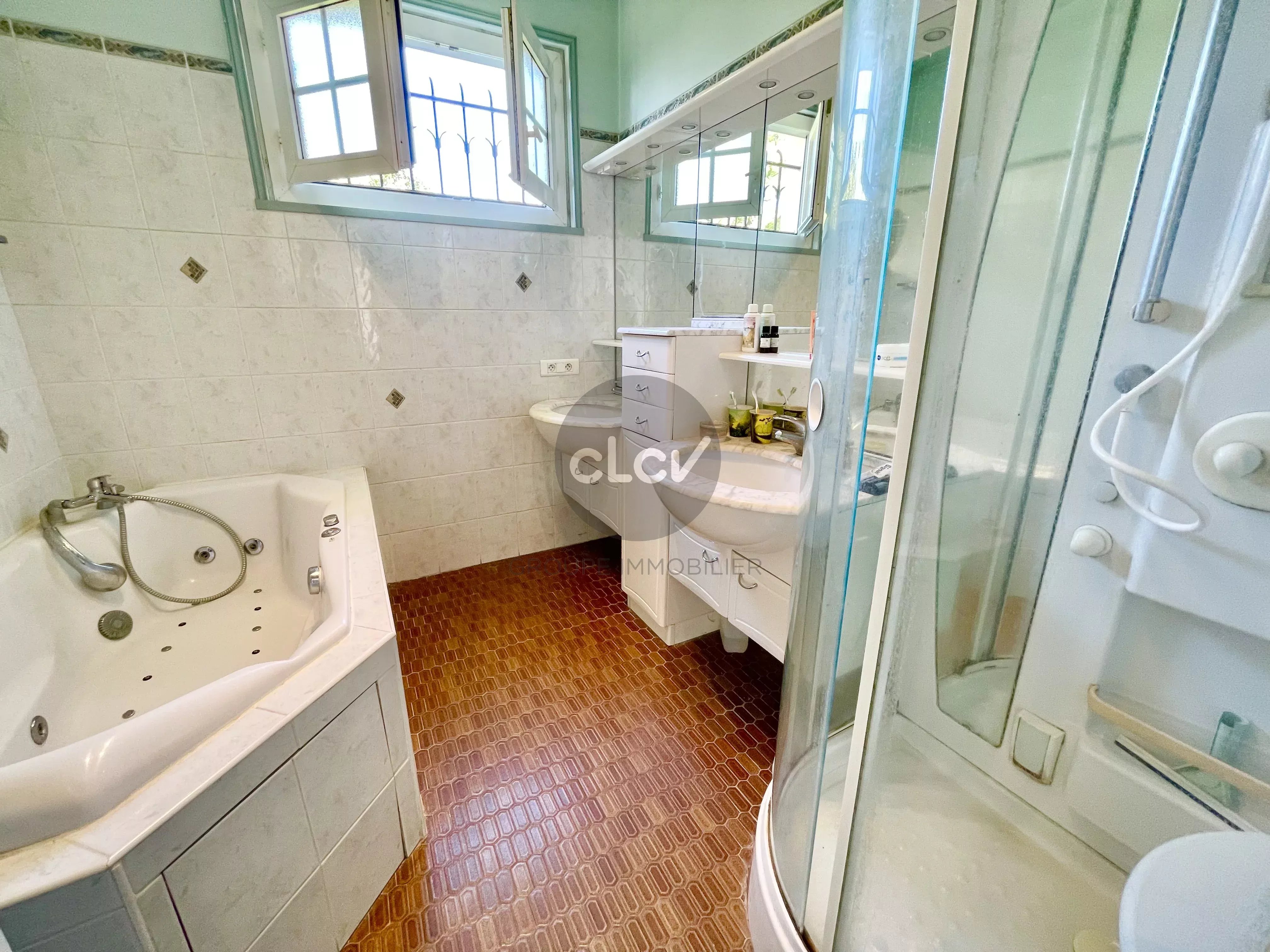 1er étage : Séjour/Salle à manger avec Cuisine US meublée équipée ouvert sur Véranda de 50 m² et sur Terrasse, 2 Chambres, Salle de Bains avec Baignoire et Douche, Toilettes, Cellier.