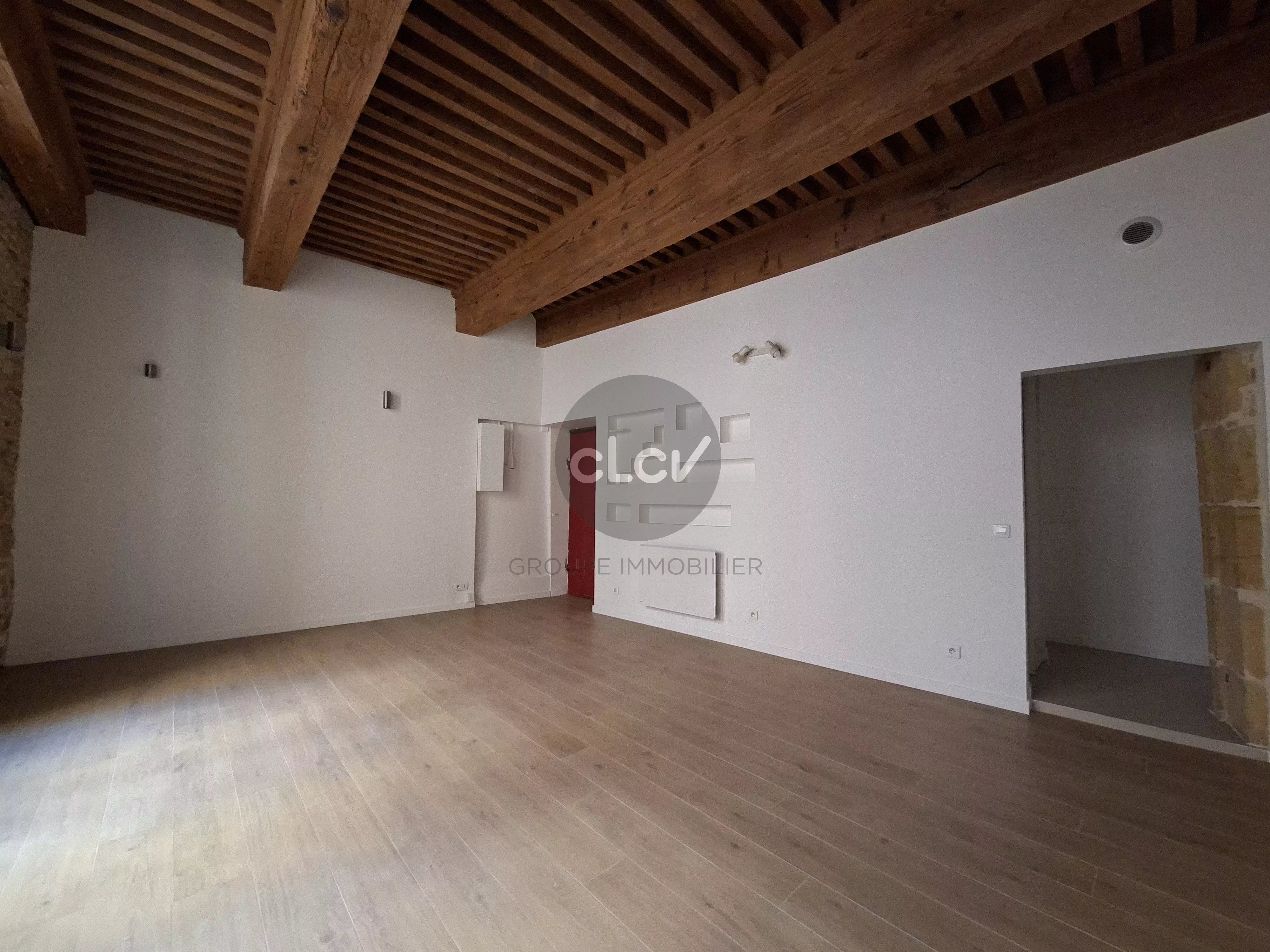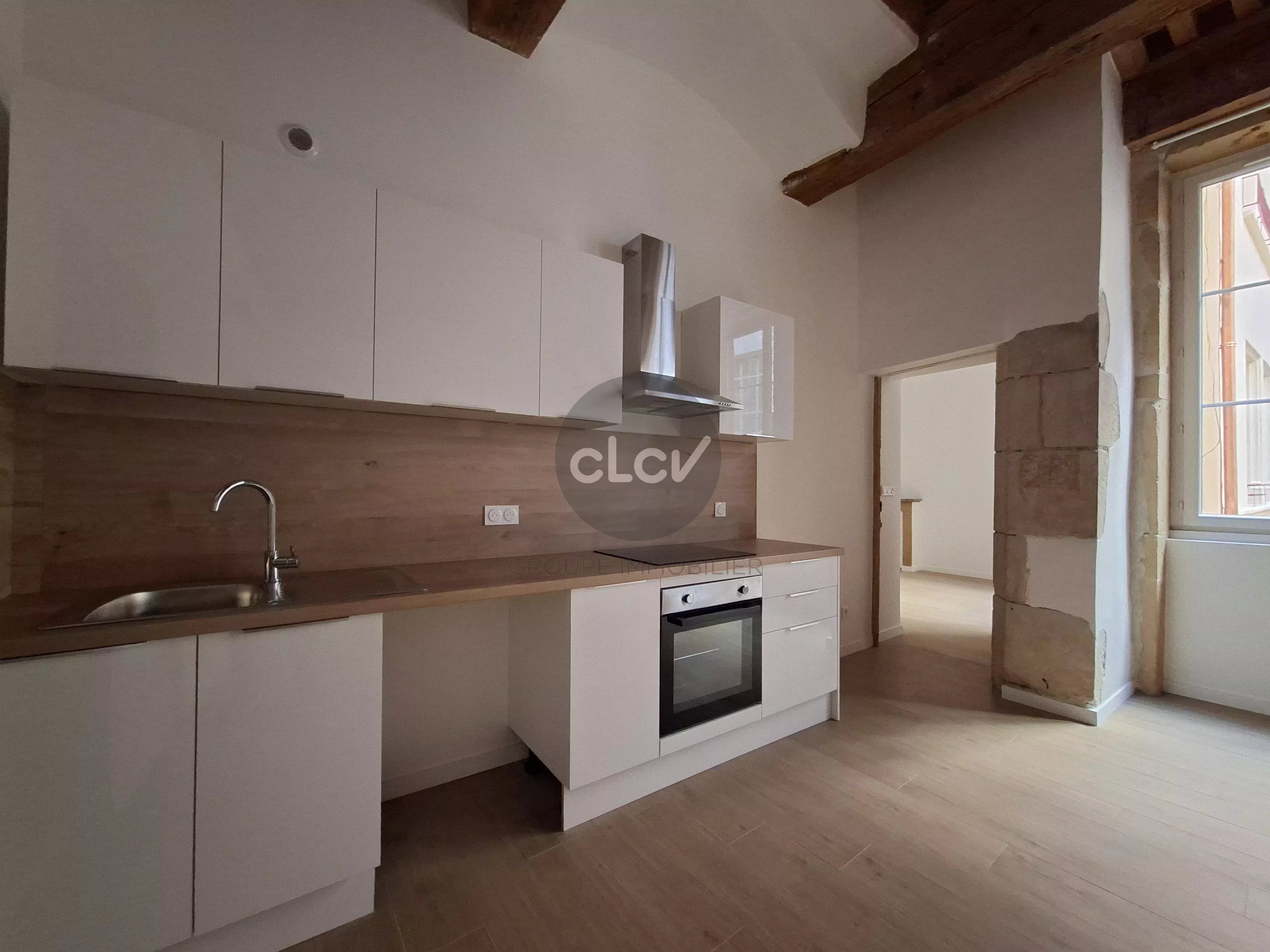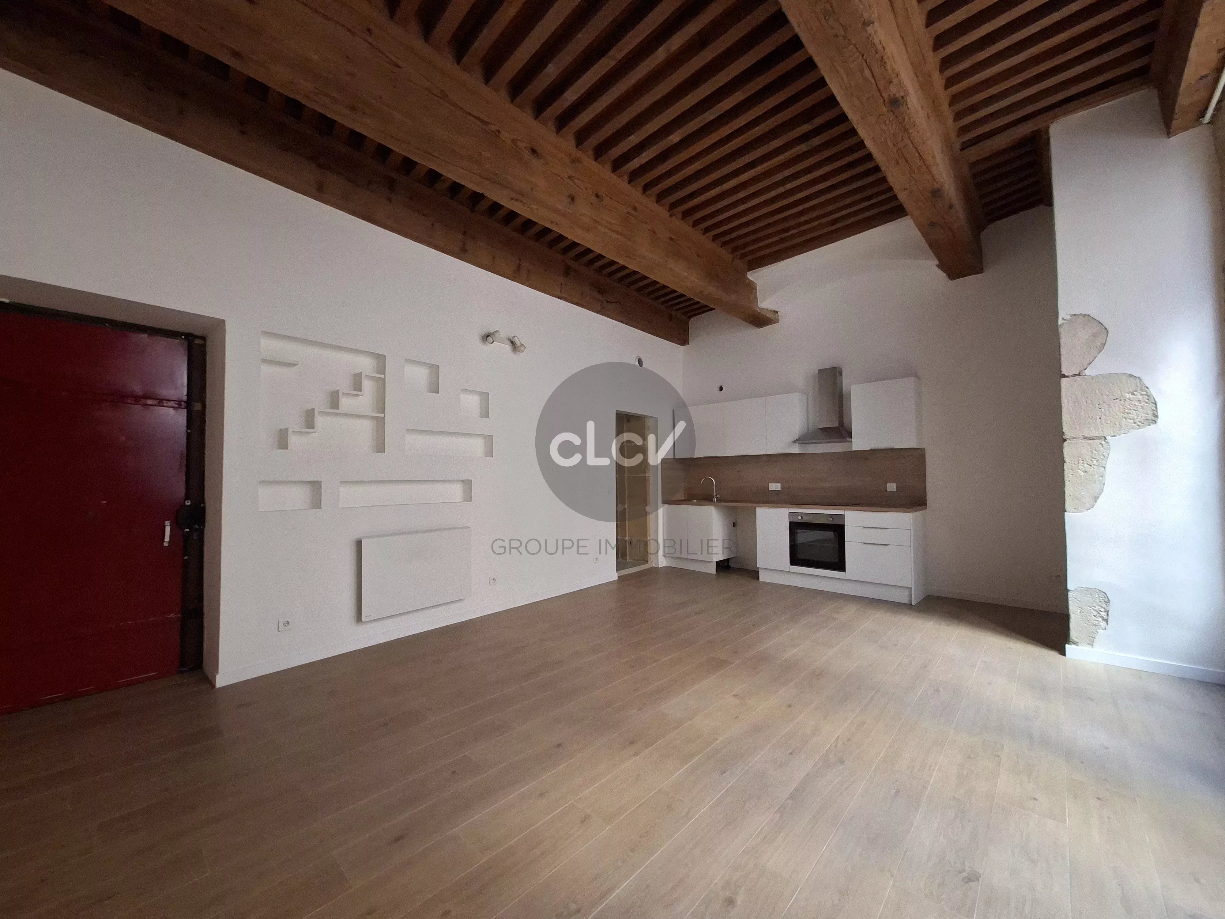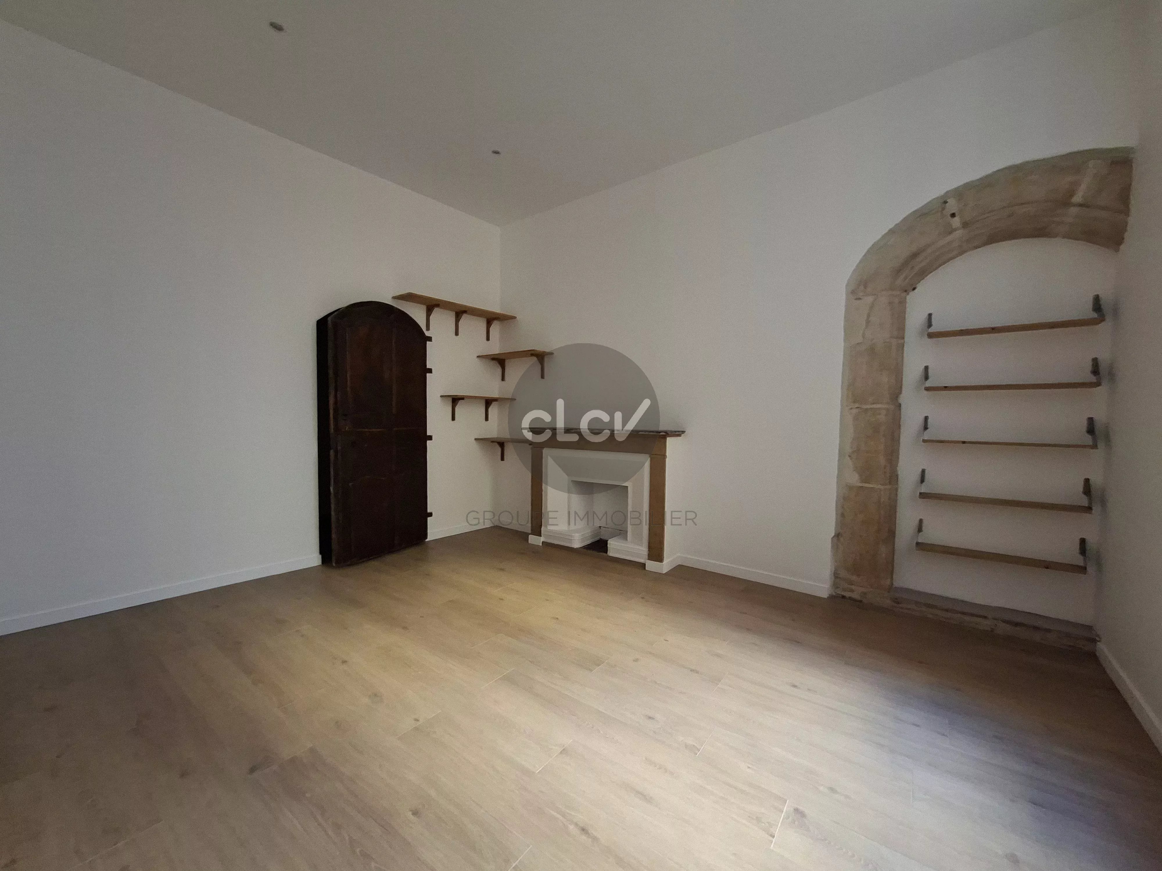 CLCV Immobilier vous propose en exclusivité ce grand T2 de 56,77 m², entièrement rénové, avec un certain cachet (pierres apparentes, plafond à la française).