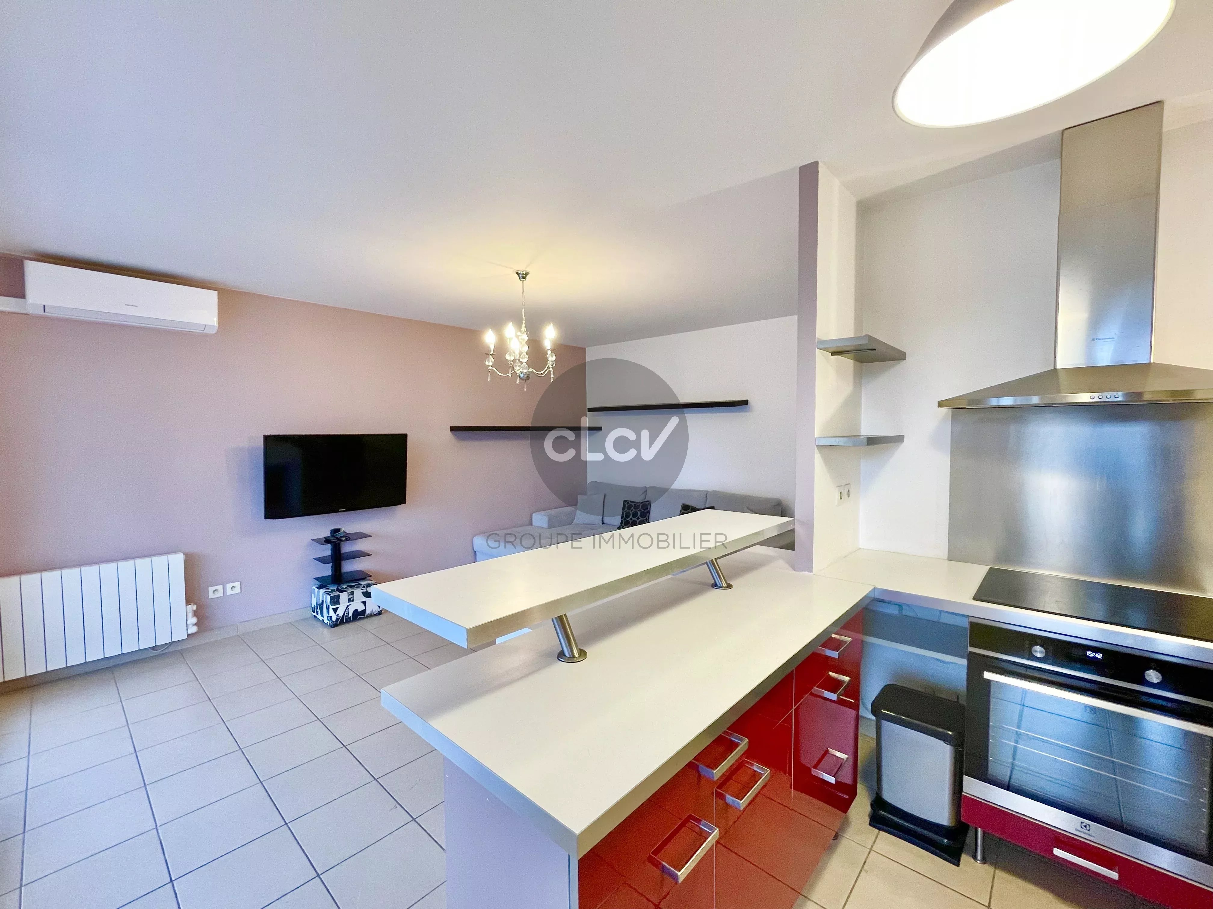 T3 meublé climatisé avec Terrasse pour manger, Garage fermé en sous-sol, Piscine, Parkings libres dans la résidence, en étage avec Ascenseur, à proximité des commodités (Bus, Commerces, Écoles, à quelques arrêts de Bus du Métro Cuire, du Campus de la Doua…).