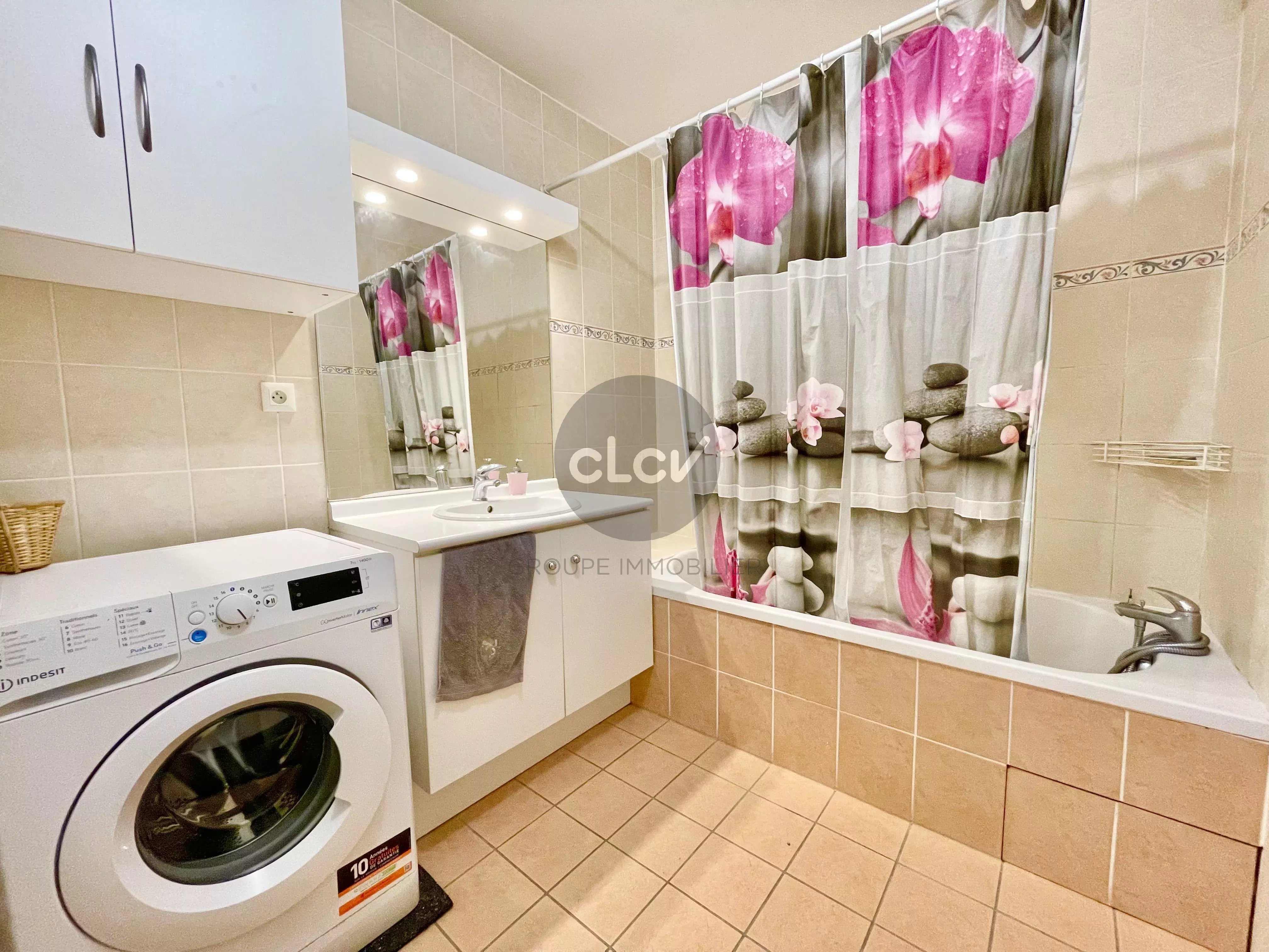 Entrée avec penderie, Séjour/Cuisine US meublée équipée ouvert sur Terrasse de 14 m2 pour manger, 2 Chambres en parquet avec penderies, Salle de Bains avec Baignoire, Toilettes.