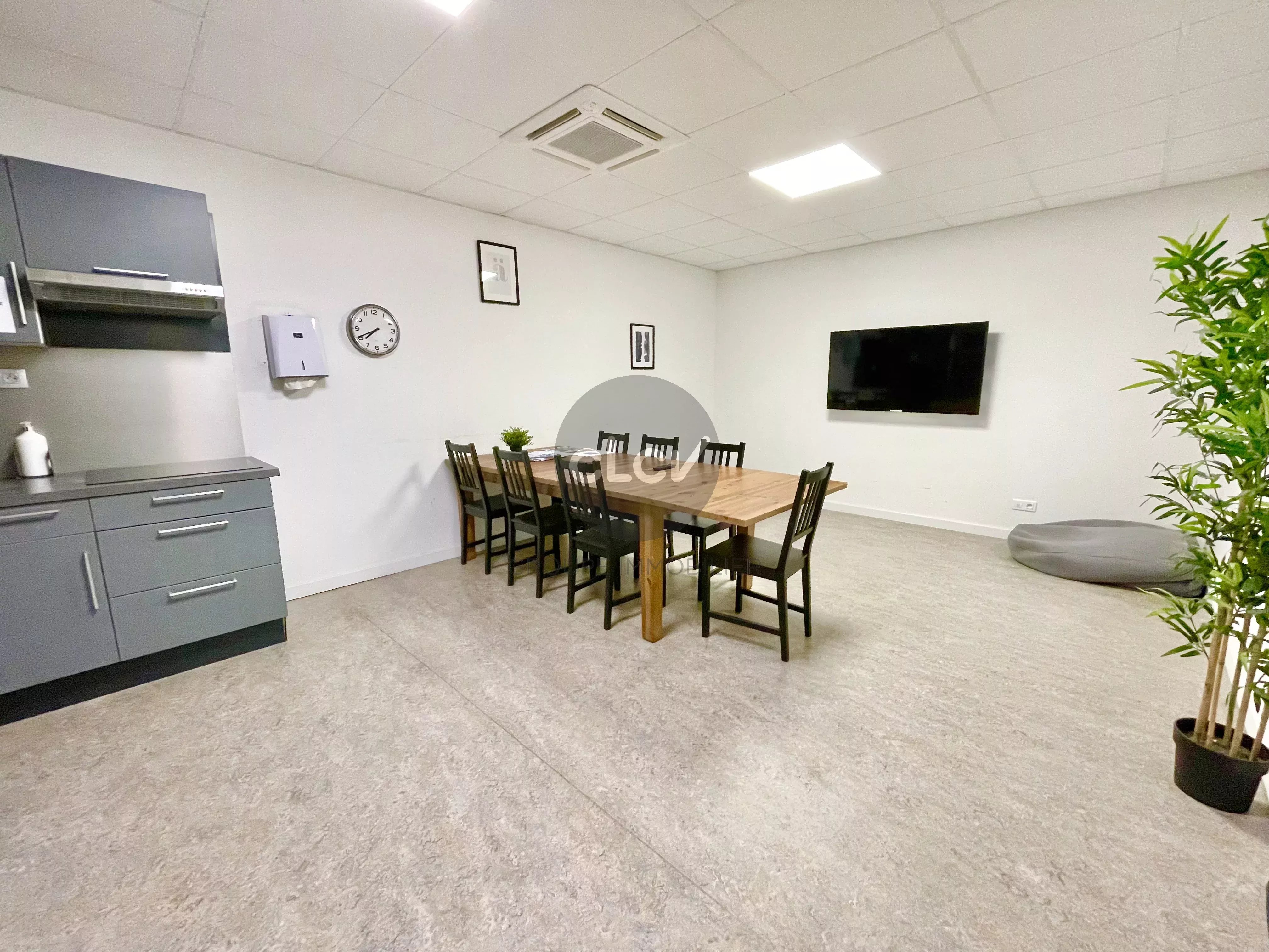 Bureaux de 46 m², MEYZIEU, Z.I. Les Servizières, dans Parc d' Activités « Le Mas des Entreprises », à proximité A42, A43, A432, A46, Périphérique, Tramway, Gare, Bus, Aéroport Lyon-Saint Exupéry, en Parfait état, avec Parkings, Salle de Réunion, Cuisine équipée, Sanitaires.